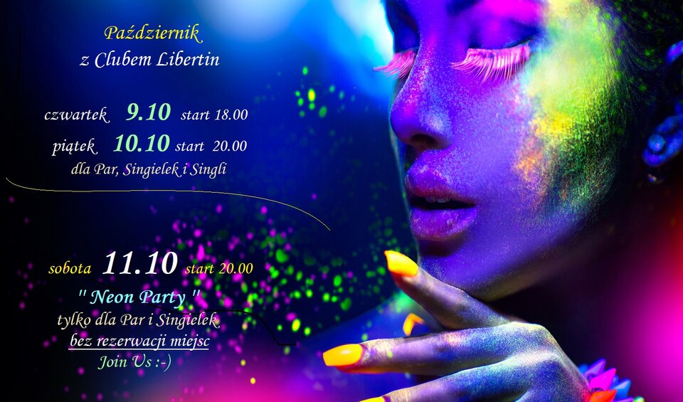 Zapraszamy wszystkich gorąco na kolejny październikowy weekend ( 9 i 10 październik ) z Clubem Libertin. Jesień już w pełni, ale nasza gorąca sauna i cieplutkie jacuzzi pozwolą Wam zapomnieć o kłopotach i problemach dnia codziennego, a nasza Strefa Zabaw zachęca do szeroko rozumianej aktywności fizycznej :-) W czwartek i piątek zapraszamy pary, singielki i singli. A w sobotę 11 października impreza dla par i singielek. Zapraszamy. Club Libertin.