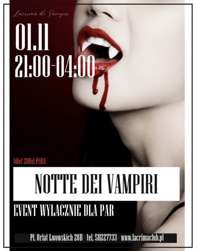 DRESSCODEAby w pełni poczuć klimat BLOOD & LUST, obowiązuje styl wampirzo-halloweenowy.