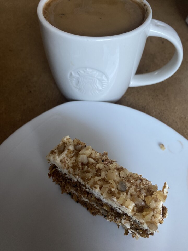 Dzięki Ci Panie. Moje prośby zostały wysłuchane. Dziś na obiad był rosół i schabowy. A teraz kawka i ciasto marchewkowe. Muszę się wzmocnić przed spacerem z Reksiem. Reksio jest nadpobudliwy i ciągnie mocno, dlatego trzeba dużo siły.