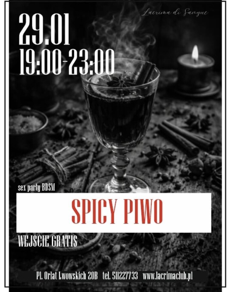 Zapraszamy na Spicy Piwo i pokaz, który podnosi napięcie do granic wytrzymałości. "Doktor Frankenstein – Wskrzeszenie Diablicy" Kustosz Warsztatu wchodzi w rolę bez wahania i przeprowadzi eksperyment, przy którym ciekawość staje się silniejsza niż komfort. Będzie mrocznie, intensywnie, elektryzująco. To wieczór dla tych, którzy lubią patrzeć, gdy coś zakazanego wraca do życia na oczach publiczności. Spicy piwo będzie krążyć, wino już się grzeje, a kolejka ustawi się sama. Wstęp 0 zł, darkroomy otwarte, ale obowiązuje ścisła selekcja. Nasz selekcjoner ma największą kontrolę – nie wpuszcza nikogo bez dress code’u. (fetysz, elegancja erotyka) Odwaga, styl i chęć bycia częścią eksperymentu decydują o wejściu. Przyjdź i poczuj moment, w którym diablica zostaje wskrzeszona, a atmosfera osiąga punkt, z którego nie ma odwrotu. Za konsolą nasz nieustraszony DJ BELLY To ostatnie zimowe spicy piwo, niech echem odbije się po wszystkich zakamarkach!