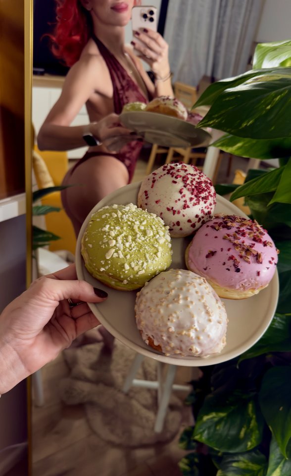 Pączki prezentują się zacnie i choć na głównym planie są to nie one główną rolę odgrywają tu 🤩🤤 aj aj aż wzroku oderwać nie można i nie mówię o pączkach 🤭🫣🤫