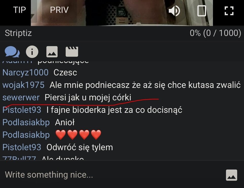 Niedorznieta69 Ten debil był też na mojej transmisji i pisał dokładnie te same słowa. Ja już zgłosiłam jego profil i zachęcam do podobnego "kliknięcia go".