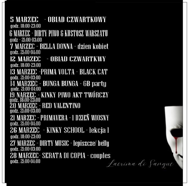 Marzec w Lacrimie nie będzie grzeczny. Oprócz naszych dobrze znanych eventów, które od dawna mają swoją wierną ekipę i własny, wypracowany klimat, dorzucamy dwie nowości, które podkręcą tempo.