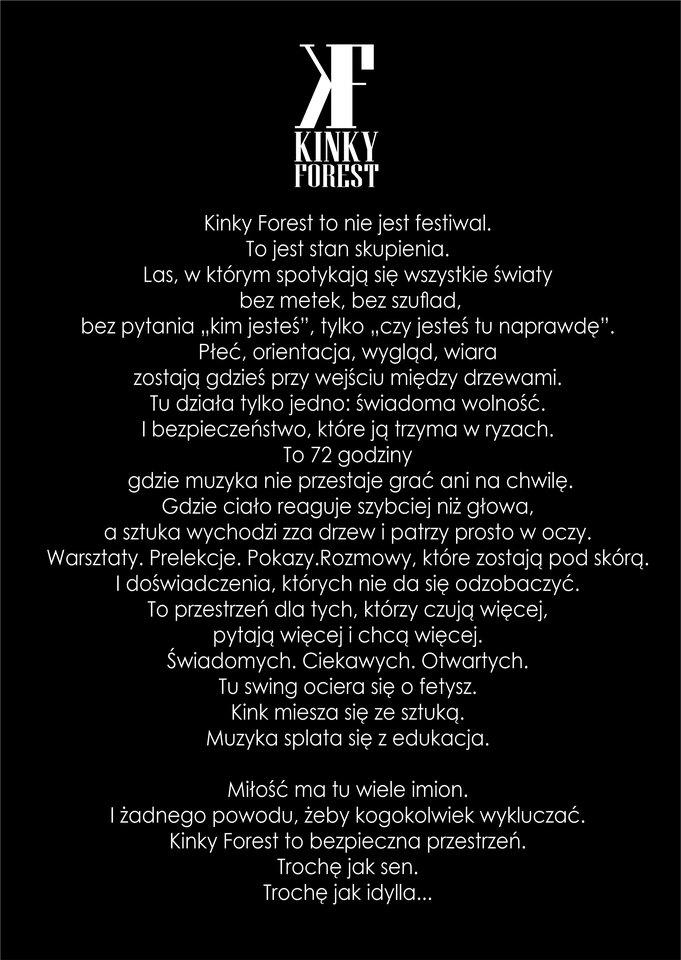Dlatego zapraszam Was do mojego ciut większego świata. Do lasu. Do ziemi, drzew, łąk i starych sadów. Do miejsca, które wygląda dokładnie tak, jak zawsze je sobie wyobrażałam. Tam sztuka wychodzi z ukrycia i oddycha razem z nami. Tam wolność — też ta seksualna — przestaje być tematem tabu, a zaczyna być czymś naturalnym, świadomym i pięknym. Tam uczymy się siebie i innych — przez rozmowy, warsztaty, doświadczenia, przez bycie blisko bez udawania.