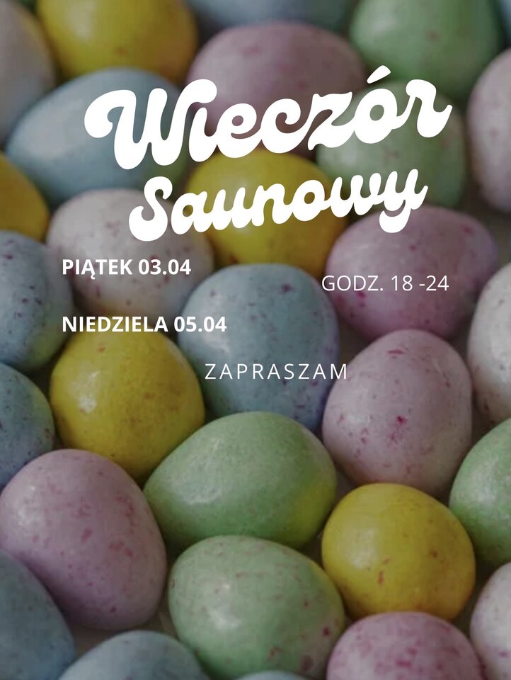 Kilka par pytało o saunowanie w okresie świątecznym, więc postanowiłem spróbować 😏 Zapraszam więc w piątek 03.04 na wygrzanie jajek 🤣 a w niedzielę 05.04, wszystkich tych którzy będą mieli dosyć siedzenia za stołami 😏 UWAGA!! Dla dziewczyn w przebraniach króliczka oraz za najlepiej przyozdobione „pisanki” niespodzianka 😉