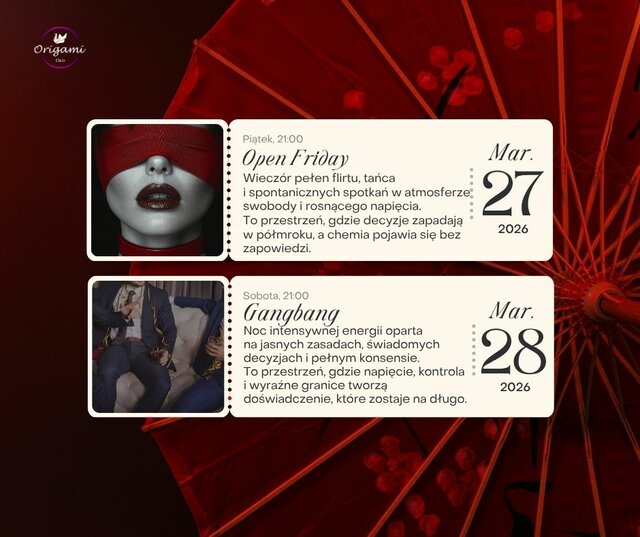 28.03 GANGBANG - noc intensywnej energii oparta na jasnych zasadach, świadomych decyzjach i pełnym konsensie. To przestrzeń, gdzie napięcie, kontrola i wyraźne granice tworzą doświadczenie, które zostaje na długo.